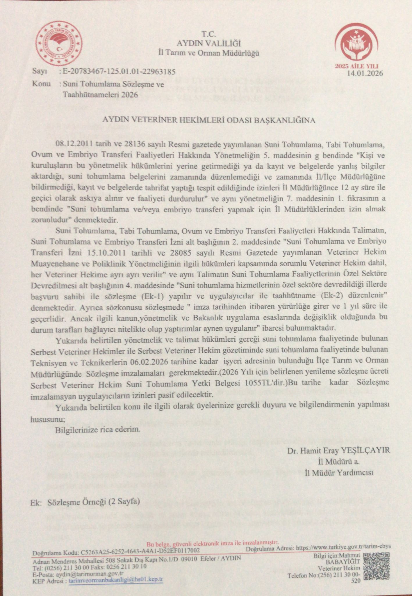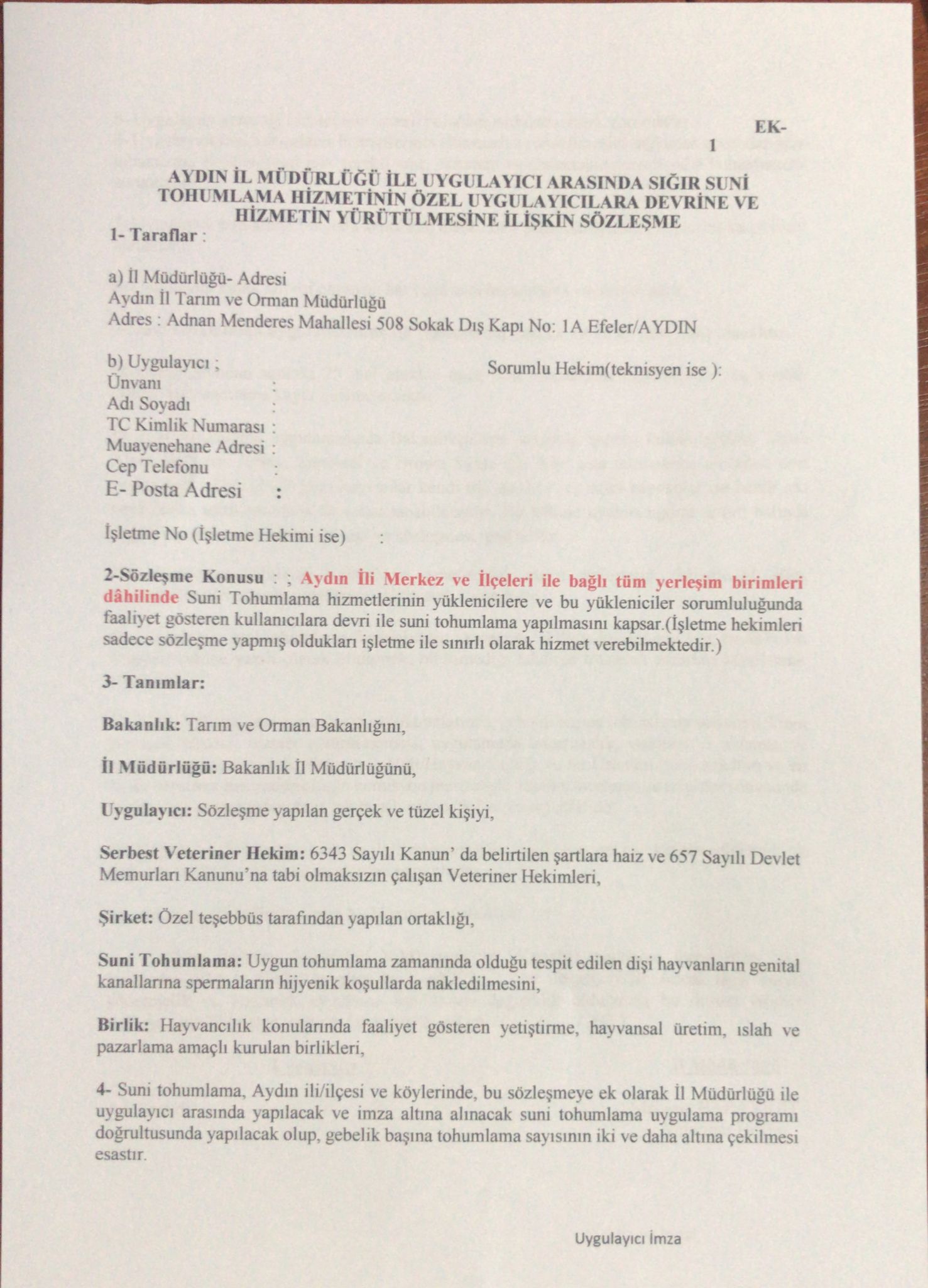SUNİ TOHUMLAMA SÖZLEŞME VE TAAHÜTNAMELERİ 2026