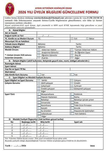2026 YILI ÜYELİK BİLGİLERİ GÜNCELLEME FORMU
