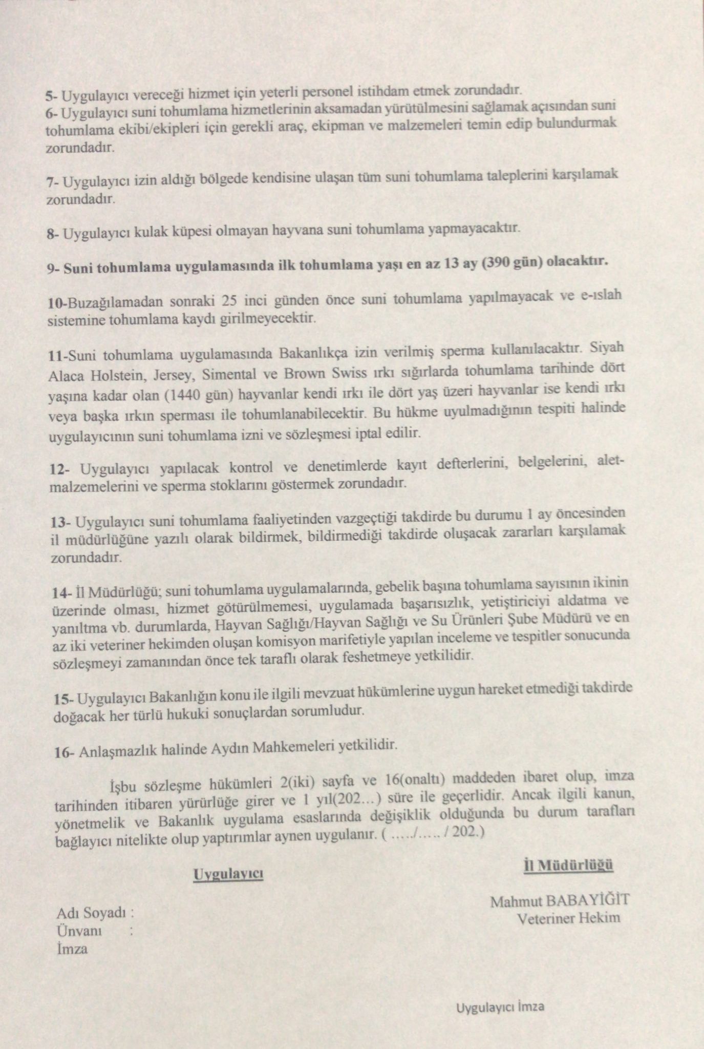SUNİ TOHUMLAMA SÖZLEŞME VE TAAHÜTNAMELERİ 2026